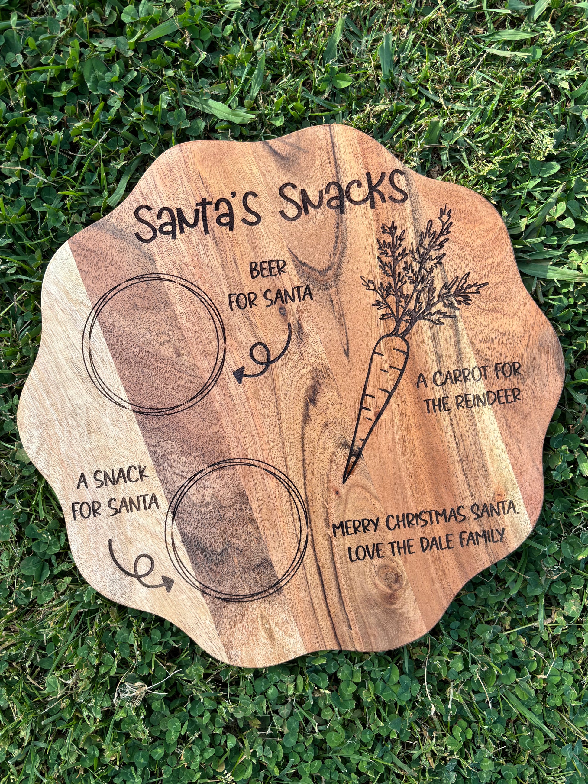 Increase the festive spirit with Santa's Snack Board. Made from Acacia wood, this engraved snack board is perfect for serving snacks, adding a touch of personalised tradition to Christmas night.